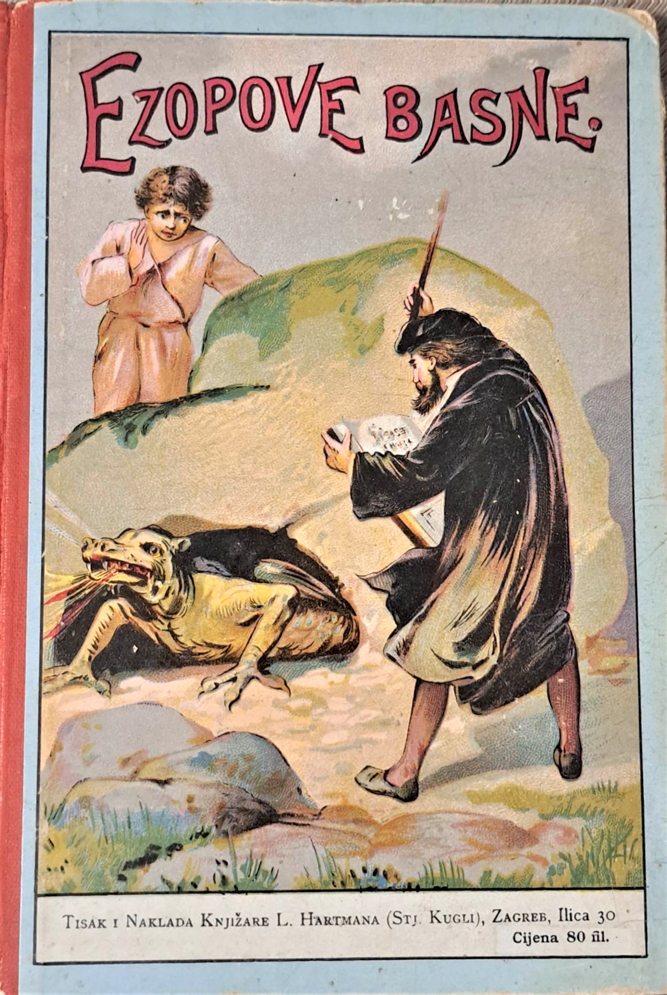 “Ezopove basne za mladež. Priredio Fran Geberta. Ukrašeno sa 22 slike.”